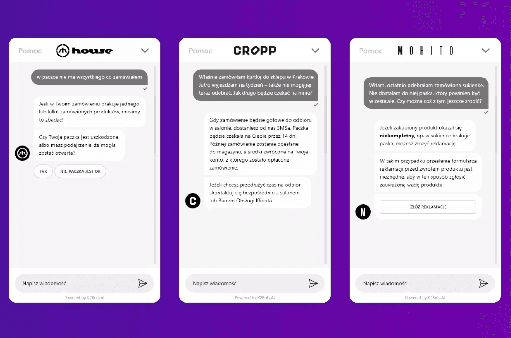 - Automatyzacja obsługi najczęściej zgłaszanych problemów klientów sklepów internetowych